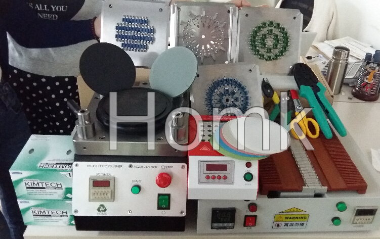 HK-550 Fiber Polishing Machine is a kind of precision processing equipment designed for the optical fiber connector grinding surface. With domestic and foreign high-power motors, the number of grinding heads is more stable and it can grind 18-40 heads at a time. It is suitable for precise grinding of various connectors of FC, SC, LC, ST, MU, MT, E2000 and other PC/APC connectors, and pressure relief and replacement of fixtures at four corners. The grinding pads are convenient and quick, and the grinding time can be freely set. The operation is simple and convenient, the processing is stable, the consumables are low, the efficiency is high, and the use is convenient.
